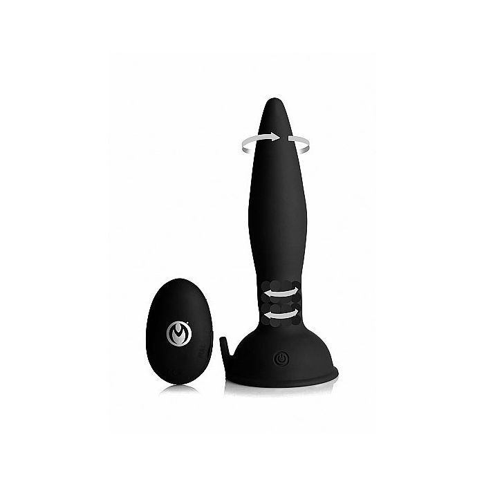 Op zoek naar een krachtige anaal toy die een onvergetelijke indruk achter laat? De Turbo Ass Spinner is een siliconen anaal plug met afstandsbediening van het merk Master Series en zal je gegarandeerd laten spinnen, kronkelen en kreunen van genot. Turbo Ass Spinner heeft een extreem krachtige zoemende motor en roterende kralen aan de steel waardoor de hele plug in je ronddraait. Ontdek maar liefst 3 snelheden, 2 vibratiepatronen en de turbomodus wanneer je met dit speeltje aan de slag gaat. De taps toelopende vorm maakt inbrengen gemakkelijk en het premium siliconen materiaal is niet poreus en ftalaatvrij. Door de sterk zuignap aan de onderkant kun je de Turbo Spinner op een glad oppervlak plaatsen voor handsfree genot.