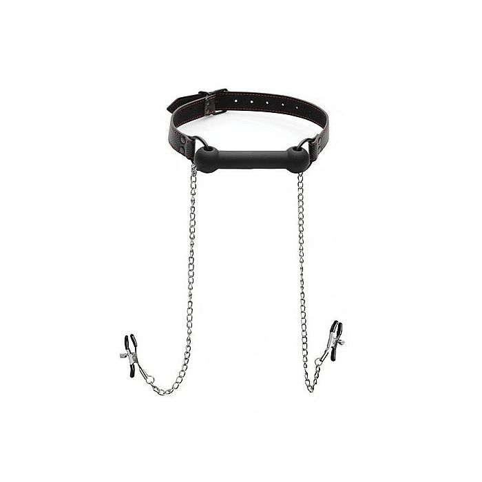 Siliconen Bit Gag met Tepelklemmen - Zwart