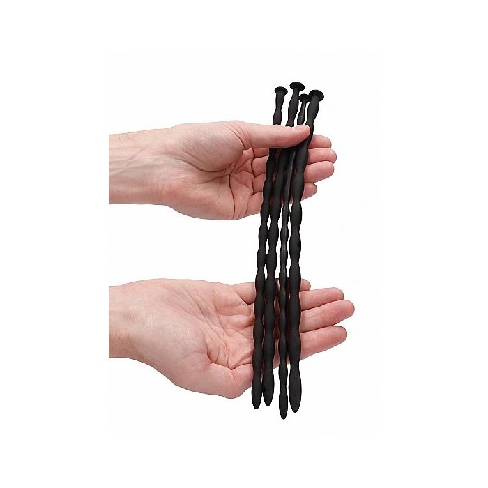 Train het sounden met de Siliconen Dilator Set van OUCH!. Deze set met dilators zijn gemaakt van zacht siliconen materiaal en komt in 4 verschillende maten. De schacht heeft een spiraal vorm zodat het nog intenser voelt wanneer jij het naar binnen brengt. De brede basis stopt de dilator veilig zodat het veilig blijft zitten en jij het makkelijk weer kan verwijderen. Begin met de kleine dilator en ga elke keer een stapje verder tot jij bij de grootste bent aangekomen. Met de Siliconen Dilator Set - Spiraalvorm ben jij binnen no time een pro.