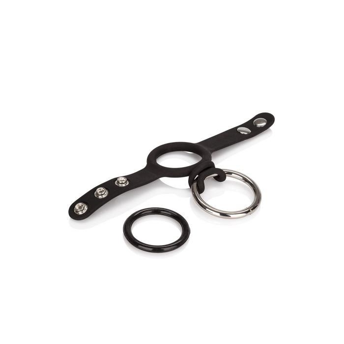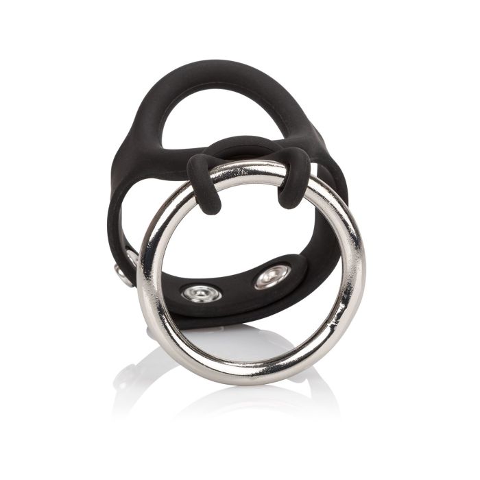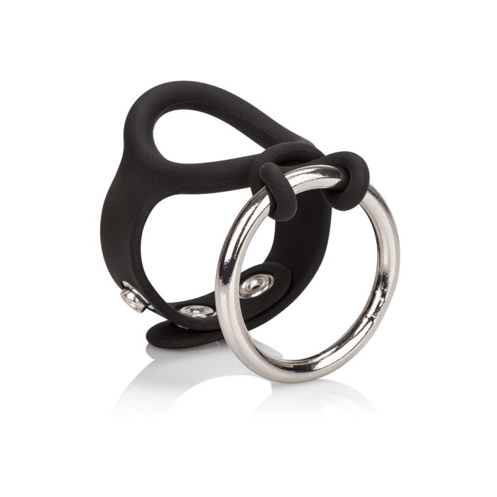 Met deze unieke ring is het nog meer pret tussen de lakens. Hij zal de ondersteuning geven die jij nodig hebt en zorgen voor een ultiem orgasme die jij nooit weer zal vergeten. Hij is gemaakt van heerlijk zacht siliconen en van hoogwaardig rvs. Ook is het mogelijk om de metalen ring te vervangen door de meegeleverde siliconen ring wanneer jij dit wenst. Het siliconen gedeelte wat om de penis en ballen heen gaat is verstelbaar met 3 drukknoopjes voor de perfecte pasvorm. Verder is het siliconen gedeelte rekbaar zodat hij eenvoudig om is te doen. Diameter van de stalen ring is 4.5 centimeter.