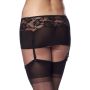 Deze sexy Slip Met Jarretelles en Kousen - Zwart van het merk Amorable by Rimba, is gemaakt van zachte en soepele materialen voor een zeer aangename pasvorm. De slip is een mini rokje gemaakt van zwarte stof en sierlijk rozen kant, waar binnenin een string is aangehecht. Aan het mini rokje zijn verstelbare jarretelbandjes bevestigd. Maak de bijgeleverde kousen aan de jarretelle bandjes vast en je ziet er heerlijk sensueel uit.