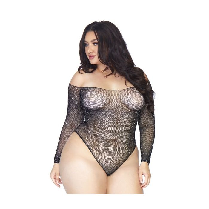 In deze fonkelende netstof body laat je stralen! De Sparkly Doorschijnende Body Queen Size van Leg Avenue is gemaakt van zacht en soepel, fijnmazig netstof en heeft lange mouwen en een off shoulder model voor een elegante look. De body heeft een string model en is geheel versierd met glinsterende steentjes voor een feestelijk effect.