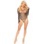 In deze fonkelende netstof body laat je stralen! De Sparkly Doorschijnende Body is gemaakt van zacht en soepel, fijnmazig netstof en heeft lange mouwen met vingerlussen voor een elegante look. De body heeft een string model en is geheel versierd met glinsterende steentjes voor een feestelijk effect.