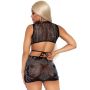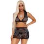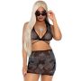 Jij bent een sprnakelende verschijning in de Sprankel Crop Top & Mini Rokje van Leg Avenue. Deze tweedelige set schijnt heerlijk door en zit lekker knus rond jouw lichaam. De top heeft een diep decolleté en het rokje heeft een hoog en kort model. De top en het rokje zijn versierd met strass steentjes in bijzondere patronen.
