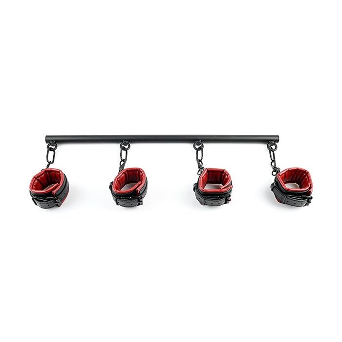 Stel je voor dat je enkels vastgebonden zijn aan de uiteinden van de spreidstang, waardoor je meest intieme delen zichtbaar en toegankelijk blijven voor het genot van je partner. Of stel je voor dat je armen gespreid en geïmmobiliseerd zijn, terwijl je geliefde elke centimeter van je plaagt en kwelt. Met de vier bevestigingspunten van de spreidstang en de draaibare klikclips op elke manchet, kun je zelfs experimenteren met het vastbinden van meerdere partners. Voor nog meer verboden plezier kun je deze set combineren met andere producten uit de Saffron-collectie.