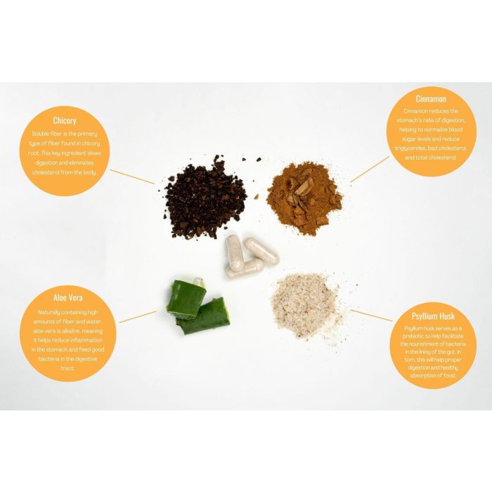 - Unieke mix van Psylliumvezels, Kaneel, Cichorei en Aloë Vera