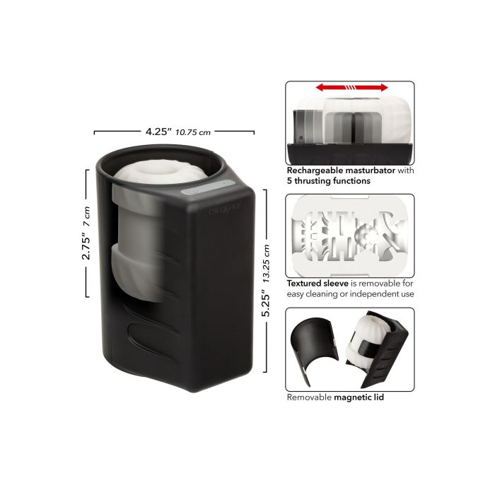 Maak kennis met de Optimum Power Thruster, een innovatieve oplaadbare masturbator die is ontworpen om de ervaring van solo-spel naar een hoger niveau te tillen. Dit geavanceerde apparaat biedt krachtige stotende actie die de gebruiker in staat stelt om de intensiteit van zijn ervaring aan te passen aan zijn persoonlijke voorkeuren. Met vijf verschillende stotende functies kan men kiezen voor alles, van zachte strelingen tot intense, krachtige stoten, waardoor elke sessie uniek en opwindend is. De getextureerde huls is niet alleen ontworpen om de sensaties te verbeteren, maar is ook eenvoudig schoon te maken, wat bijdraagt aan het gebruiksgemak en de hygiëne.