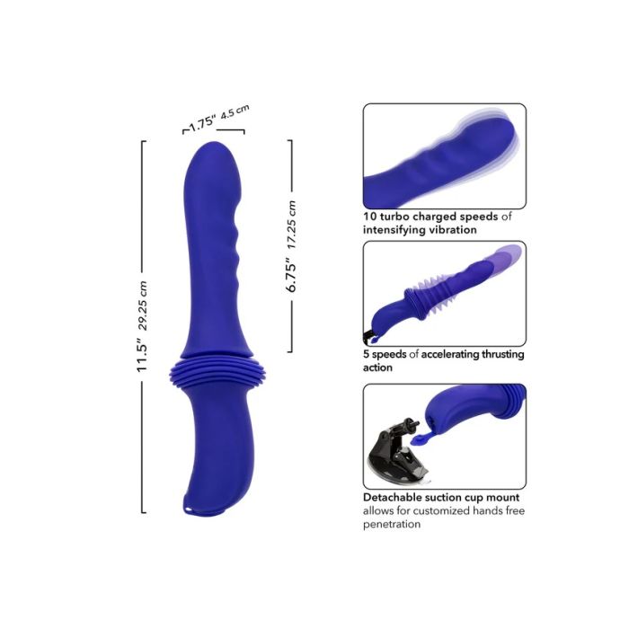 Stap in de snelheidszone van genot met de Sex Machine Ridged Thruster jouw toegang tot een onvergetelijke ervaring. Deze krachtige seksmachine is uitgerust met een gladde schacht die klaar is om pure extase te leveren. Met maar liefst 10 turbo-aangedreven snelheden van intensieve vibratie en 5 snelheden van versnellende stoot-actie, is het ontworpen om aan je diepste verlangens te voldoen. Of je nu de voorkeur geeft aan een subtiele aanraking of een krachtige stimulatie, de Ridged Thruster biedt een scala aan sensaties die je kunt bedienen met of zonder de afstandsbediening. Dit betekent dat je je ervaring volledig kunt afstemmen op wat jij op dat moment wilt.