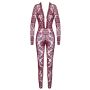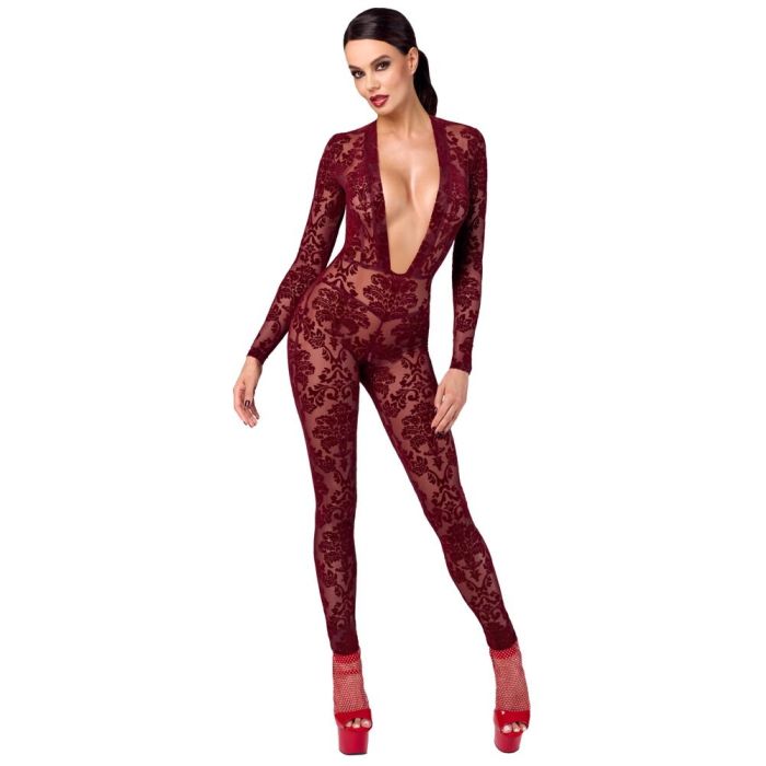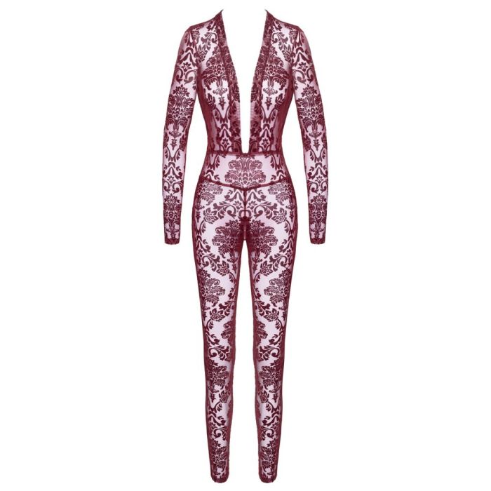 De Kink Royal jumpsuit van Noir is een must-have voor elke diva die haar sensualiteit wil omarmen! Deze huiddichte jumpsuit in een betoverende bordeauxrode transparantie is versierd met fluweelachtige flockprint ornamenten die een luxe uitstraling geven. De lange mouwen en het overal elastiek zorgen voor een perfecte pasvorm en maximaal comfort, zodat je je vrij kunt bewegen, of je nu danst op een feestje of een avondje uit gaat. De extra laag uitgesneden halslijn voegt een vleugje verleiding toe, terwijl de discrete ritssluiting in het kruis het geheel praktisch en stijlvol maakt. Laat je innerlijke godin stralen met deze onweerstaanbare jumpsuit!