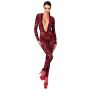 Strakke Jumpsuit met Fluweelachtige Flockprint - Bordeauxrood