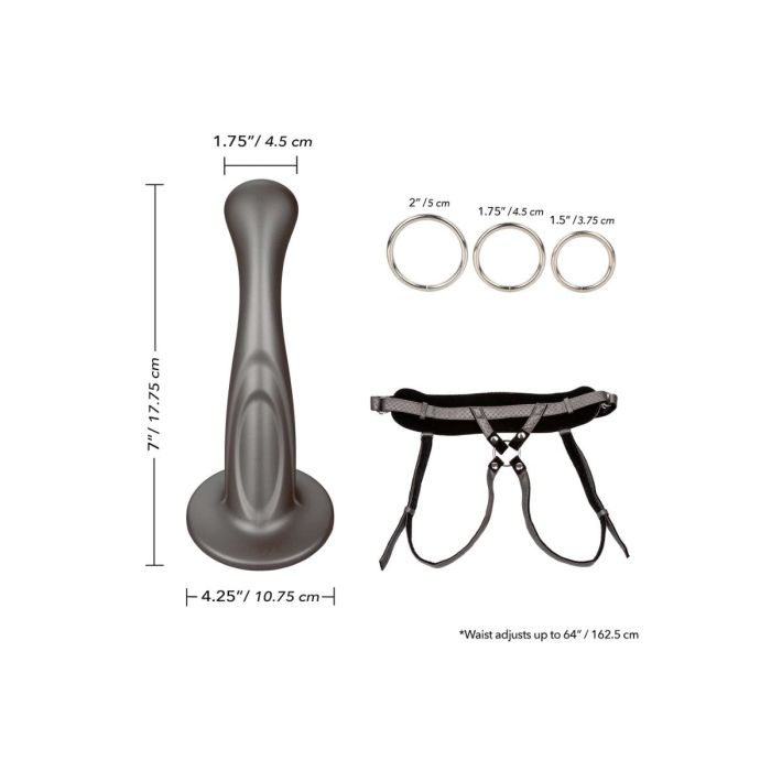 De Strap-On Harnas The Royal Sensual Set bevat het Regal Princess-dildoharnas, de Sensual dildo en drie verwisselbare O-ringen. Het harnas heeft een maximale tailleomvang van 162.5 cm en voelt comfortabel aan. De dildo is 17.75 cm en diameter 4.5 cm. De Sensual dildo is gemaakt van pure siliconen en volledig lichaamsveilig. Wij adviseren wel glijmiddelen te gebruiken op waterbasis.