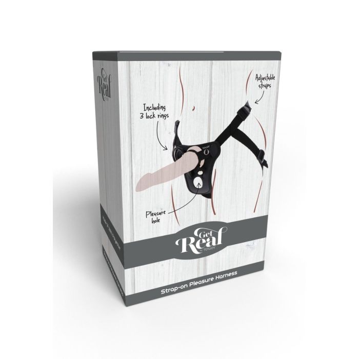 De Strap-On Harness Pleasure van Get Real by Toyjoy is ontworpen voor ultiem rollenspelplezier voor jou en je partner. Het harnas heeft een gewatteerde voorkussen voor een comfortabele pasvorm. Het voorste deel is ontworpen met verstelbare sluitingen. Er worden 3 siliconen ringen (3.5, 4.5 en 5 cm) meegeleverd waarmee je je favoriete dildo of vibrator kunt gebruiken.