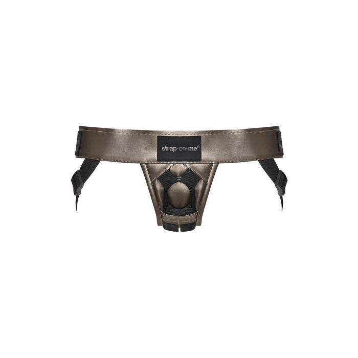 Ben jij toe aan wat strap-on plezier? Ga dan voor de Strap-On-Me Harnas Leatherette Curious. Deze strap-on is zelfs perfect voor ruige sessies. De strap-on heeft brede banden en is gemaakt van stevig kunstleer. Je kan het stevig afstellen naar je eigen maat zodat het de perfecte pasvorm heeft. Het materiaal oogt zeer luxe met name door de metallic bronzen kleur. De Strap-On-Me Harnas Leatherette Curious is compatibel met elke Strap-On-Me dildo.