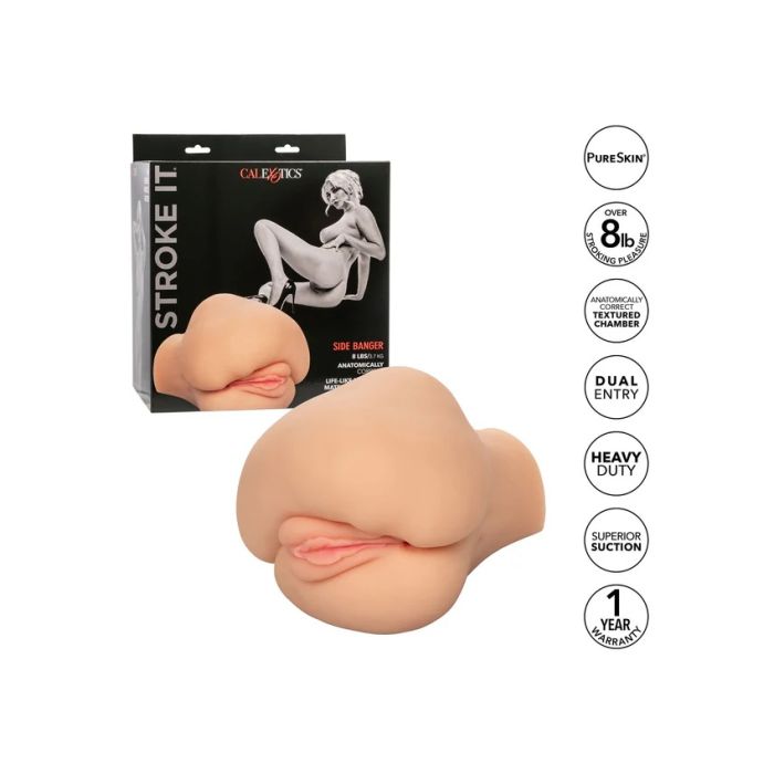 Met een gewicht van maar liefst 3,7 kg biedt deze levensechte masturbator een realistische ervaring die je fantasieën tot leven brengt. De luxueuze vagina en het dubbele kamerontwerp zorgen voor zowel voor- als achterzijde spel, waardoor je alle kanten van je verlangens kunt verkennen. Gemaakt van ultra levensecht Pure Skin-materiaal, voelt de Stroke It Side Banger aan als de echte zaak. De pluche zachte roze lippen en de strakke achterkant vormen een verleidelijke toegang, perfect voor een intense en bevredigende ervaring.