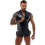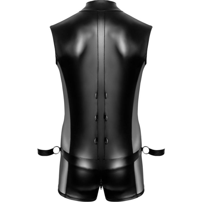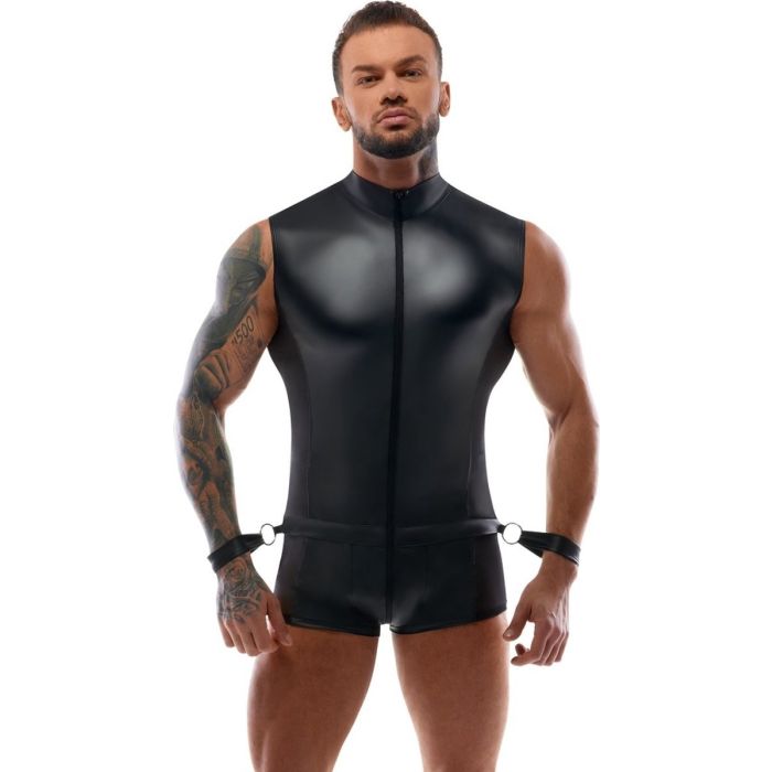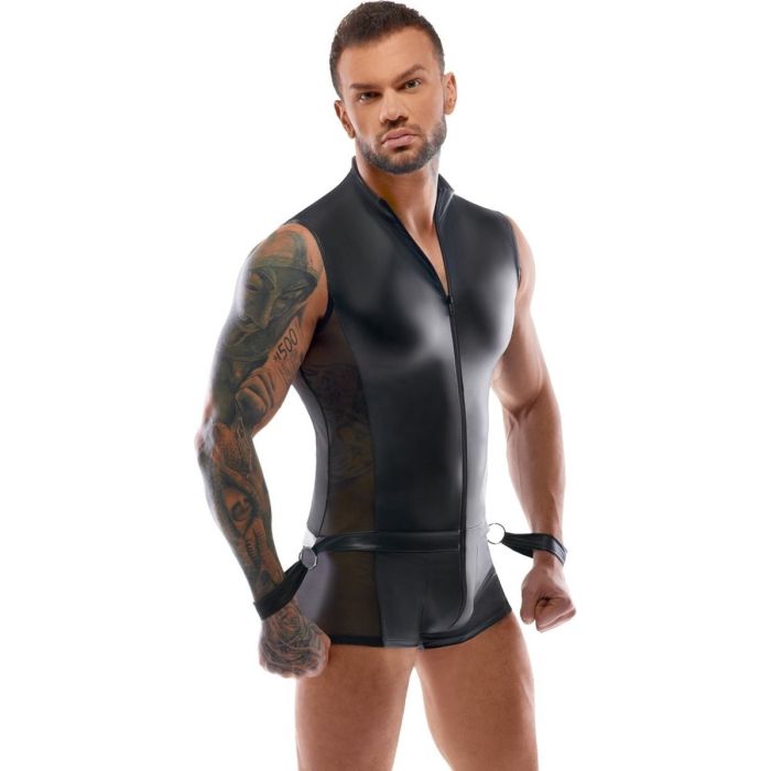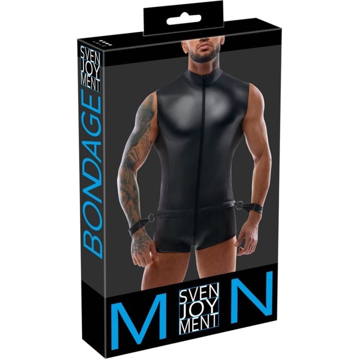 Deze verfijnde jumpsuit voor mannen is een absolute must-have voor degenen die willen opvallen en een echt mannelijke indruk willen maken. Bij Svenjoyment Bondage vind je precies wat je zoekt. Deze jumpsuit is niet alleen perfect voor bondage rollenspelen, maar ook voor elke gelegenheid waarin je wilt opvallen en indruk wilt maken. De matte wetlook look van de jumpsuit is indrukwekkend en geeft een hoogwaardige uitstraling. Wat deze jumpsuit echt uniek maakt, zijn de spannende inkijk langs de zijkanten van mesh netstof en de opstaande kraag. Deze details geven de jumpsuit een mannelijk en trendy accent. Bovendien zijn de bondage handboeien afneembaar en kunnen ze worden vastgemaakt aan de 6 verschillende ringen op de onderrug. Met de handige klittenbandsluiting zijn de handboeien eenvoudig te gebruiken en gemakkelijk vast te zetten. Dit biedt talloze mogelijkheden voor de aantrekkelijk onderdanige mannen die willen schitteren, zowel thuis als op verschillende feestjes. Met deze jumpsuit ben je verzekerd van een opvallende en stijlvolle look die je zelfvertrouwen een boost zal geven.