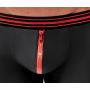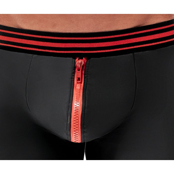 Deze strakke broek van Svenjoyment is perfect voor mannen die op zoek zijn naar een stijlvolle en opvallende look. De elegante zwarte matte uitstraling van de broek zorgt ervoor dat je er altijd chic uitziet, terwijl de rode verborgen rits in de buidel een speels accent toevoegt. De brede gestreepte geweven elastische tailleband zorgt niet alleen voor een comfortabele pasvorm, maar geeft de broek ook een sportieve uitstraling. Dankzij het zachte en elastische materiaal rondom de broek, geniet je van maximaal comfort, of je nu een avondje uit gaat of gewoon thuis ontspant. De broek accentueert je figuur op een subtiele manier en is perfect te combineren met een casual T-shirt voor een relaxte look, of met een nette blouse voor een meer formele gelegenheid. Met deze broek van Svenjoyment ben je verzekerd van een modieuze uitstraling en ultiem draagcomfort.