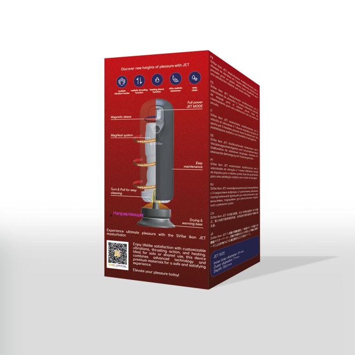 Daarnaast beschikt de SVibe IKON Jet over een verwarmende basis die de lichaamswarmte nabootst, wat zorgt voor een nog natuurlijker gevoel tijdens het gebruik. Deze combinatie van geavanceerde technologie en premium materialen garandeert niet alleen een veilige ervaring, maar ook een bevredigende. Of je nu solo geniet of samen met een partner, deze masturbator is ontworpen om je plezier te maximaliseren. Verhoog je genot en ontdek de mogelijkheden die de SVibe IKON Jet te bieden heeft; het is de perfecte aanvulling op je intieme momenten.