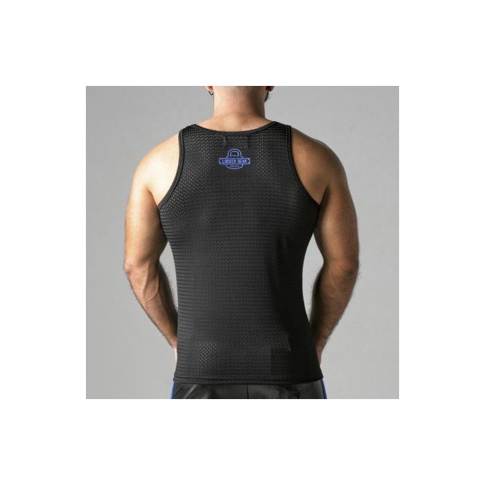 Verleid je partner met de fetisj-meets-sports look! Deze tanktop zal zeker voldoen aan al jouw verwachtingen. De samenstelling van de mesh tanktop is nylon gemixt met elastaan voor een optimaal draagcomfort. Op het voorpand van de tanktop bevindt zich een zakje met een contrasterende witte streep voor een speelse look. De tanktop kun je gemakkelijk combineren met de andere bijpassende fetisj items voor een extravagante look.