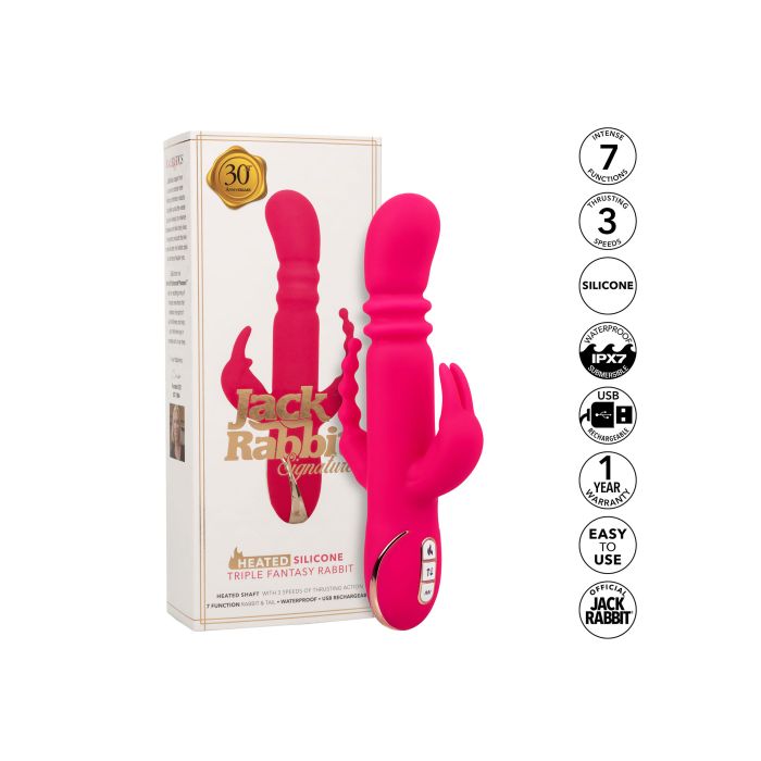 Vier 30 jaar van genot met de Jack Rabbit Signature Heated Silicone Triple Fantasy Rabbit, een innovatief product dat de grenzen van plezier verlegt. Dit speeltje is zorgvuldig ontworpen om buitengewone zintuiglijke ervaringen te bieden, met een verwarmde schacht die in slechts 4 minuten de ideale temperatuur bereikt. De combinatie van klassieke konijnenoren en een verleidelijke staart zorgt voor een unieke stimulatie, terwijl de krachtige stoten de gebruiker in vervoering brengen. De onafhankelijke regelbare verwarming maakt het mogelijk om warmte te combineren met beweging, wat de ervaring verder verrijkt.