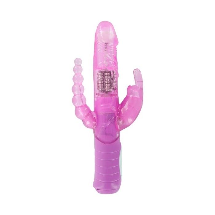 Deze Tarzan vibrator van Seven Creations stimuleert jou op maar liefst drie verschillende plekken. De schacht is voorzien van roterende parels, die je naar één richting kunt laten roteren. De anaal kralen en de rabbit hebben zeven vibratiestanden. De vibrator is 100% waterdicht.