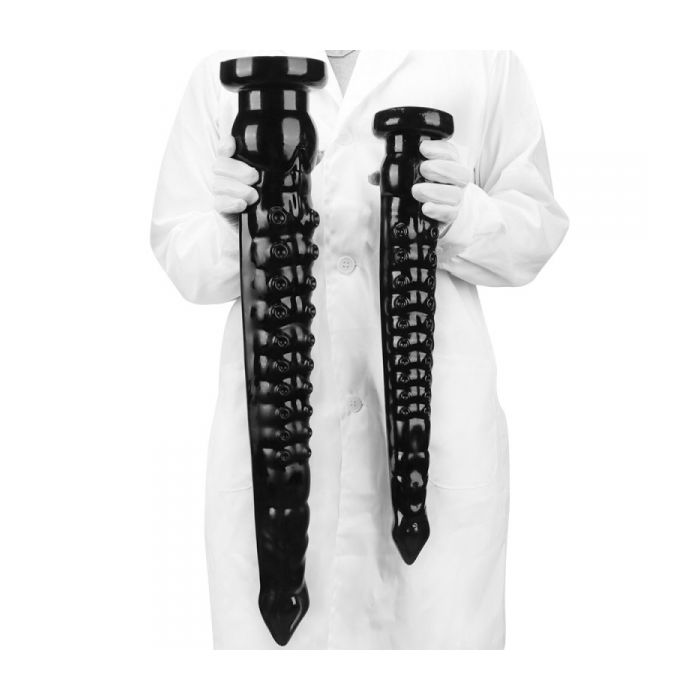 De Tentakel Dildo Piov S is een zwarte dildo in de vorm van een tentakel, met een inbrengbare lengte van 43 cm.