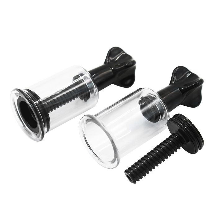 Zet je tepels in de spotlights met de Tepel Zuigers - S - Zwart van Kiotos. Deze set bestaat uit twee tepelzuigers met een draai systeem waardoor jij je tepels de meest krachtige vacuüm kan geven. De tepel zuigers zijn makkelijk in gebruik. Breng de zuiger op je tepel aan en zorg dat er geen lucht bij komt. Draai vervolgens langzaam de tepelzuigers naar buiten en je tepel wordt veilig mee getrokken. Het cilinder is transparant zodat jij precies kan zien hoe jouw tepel stijf wordt getrokken. Herhaal dit met je andere tepel en geniet van een heerlijke zuigkracht. Je kan de tepelzuigers laten zitten maar verwijderen is natuurlijk ook een optie. Zorg bij het gebruik van de Tepel Zuigers - S - Zwart dat je borsten vetvrij zijn voor een nog krachtiger gebruik.