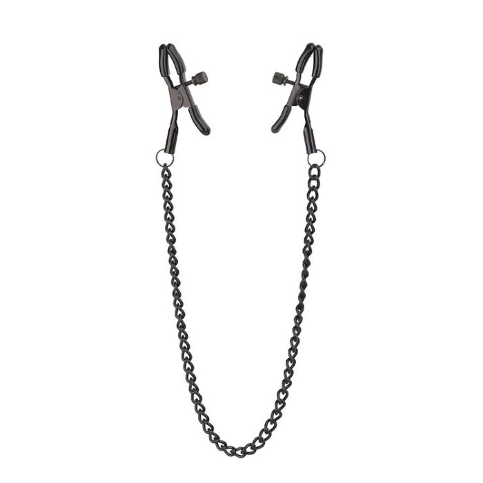 Breng BDSM naar the next level met de Tepelklemmen Blaze Deluxe van Dream Toys. deze tepelklemmen zijn voorzien van een stoere ketting die de tepels wat naar beneden zal trekken. De tepelklemmen zijn aan te draaien zodat jij zelf kan bepalen hoe strak ze zullen zitten.De nopjes die over de uiteinden van de tepelklemmen zitten, zorgen ervoor dat de klemmen niet snel van de tepel afglijden maar ook dat het je huid beschermt.