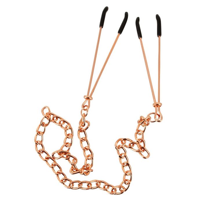 De ketting is voorzien van twee tepelklemmen, die een extra sensuele dimensie toevoegen aan je outfit. De druksterkte van de klemmen kan eenvoudig worden aangepast met behulp van de schuifringen, zodat je zelf kunt bepalen hoeveel druk je wilt ervaren.