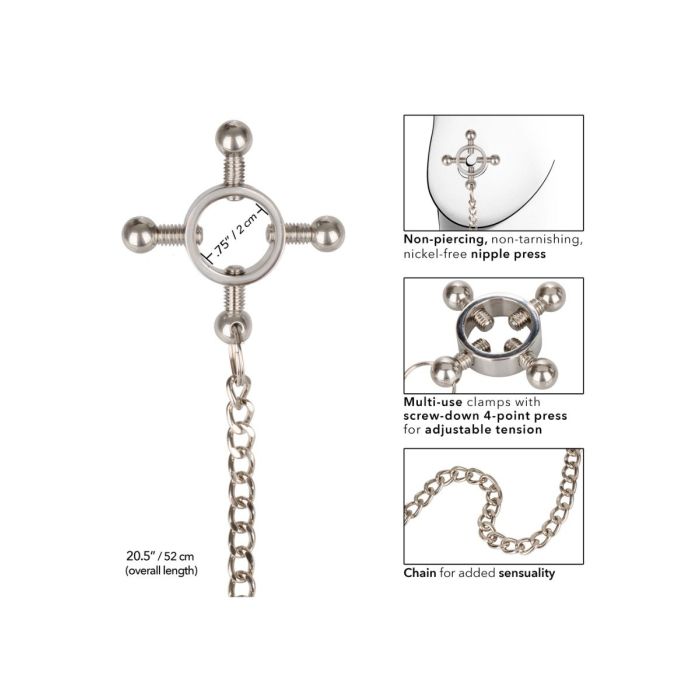 Met de Tepelklemmen Point Press w Chain geniet jij van een heerlijke stimulerende tepelspel. Het zijn 4-punts tepelpers met een ketting. Geweldig voor BDSM liefhebbers.