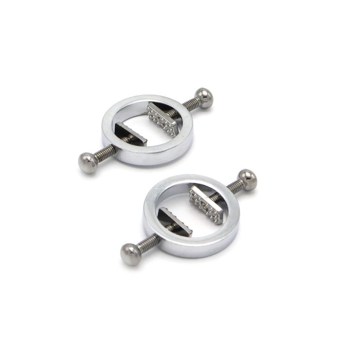 Geniet van spannende tepelstimulatie met deze tepelstimulator met schroeven. Het is een mooi afgewerkt rond seksspeeltje dat veel plezier geeft. Met de scherpe tanden geeft deze tepelklem het ultieme genot en kun je de schroeven zo strak aandraaien als je wilt. Als ze eenmaal op de tepels zitten, is het echt een prachtig gezicht. Je plaatst de metalen tepelklemmen over je tepel of de tepel van je partner en draait vervolgens langzaam de schroeven vast. Als je ze aandraait, komt de tepel onder meer spanning te staan.