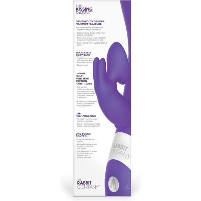 De The Rabbit Company The Come Hither Rabbit Vibrator - Paars streelt en masseert de G-Spot met twee onafhankelijke motoren voor meer stimulatie en extra genot. Naadloos, gemaakt van lichaamsveilige siliconen materiaal zorgt de The Rabbit Company The Come Hither Rabbit Vibrator - Paars voor een zacht gevoel dat zich onderscheidt van andere speeltjes. De lange oren en micro snorharen voegen micro-trillingen toe voor een goede tijd. De The Rabbit Company The Come Hither Rabbit Vibrator - Paars is volledig USB oplaadbaar en de eenvoudige one touch control panel zorgt voor een gemakkelijkere algehele gebruikerservaring.