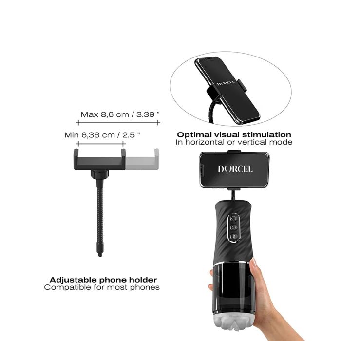 Geniet van handsfree plezier dankzij de sterke zuignap die je in staat stelt om je handen vrij te houden voor andere dingen, terwijl de verstelbare telefoonhouder je de mogelijkheid biedt om je favoriete beelden te bekijken, zowel horizontaal als verticaal. De realistische ingang en de zijdezachte sleeve met een getextureerd kanaal zorgen voor ultiem comfort en intensiteit. En als het tijd is om schoon te maken, is dat een fluitje van een cent dankzij de afneembare sleeve.