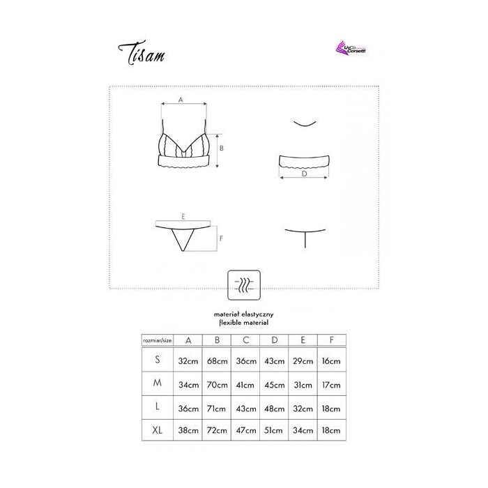 Het spannende Tisam Lingerie Setje is een levendige combinatie van twee kleuren satijn en romantisch bloemen kant. De set bestaat uit een topje en een mini string.
