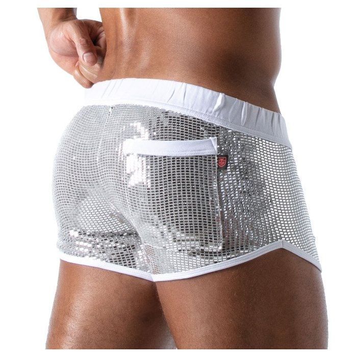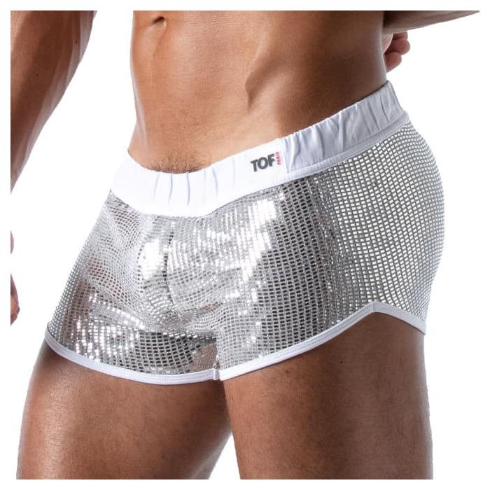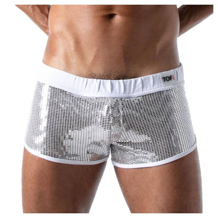 De TOF Paris Star Mini Shorts - Zilver zijn een absolute must voor in jou garderobe. Deze short zit heerlijk nauwsluitend en is gemaakt van zachte materialen met een hoog draagcomfort. Deze short zal zitten als gegoten waardoor je mannelijke vormen goed worden benadrukt.