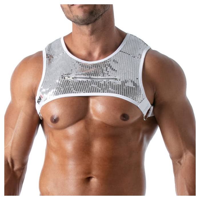 Met een harnas zoals de TOF Paris Star Pocket Harnas - Zilver laat jij jouw schouders en rug nog breder en extra gespierd lijken. De TOF Paris Star Pocket Harnas - Zilver geeft een extra en feestelijke uitstraling aan jouw gespierde bovenlichaam. Het harnas is gemaakt van soepele stof met prachtige glitters.