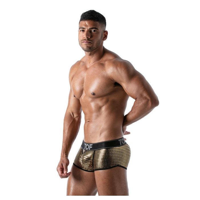 De TOF Paris Star Trunks - Goud is een strakke nauwsluitende trunk gemaakt van zachte materialen met een hoog draagcomfort. Deze trunk is heerlijk glad en dun en zit als gegoten waardoor je mannelijke vormen goed worden benadrukt. Het zachte materiaal zorgt ervoor dat de boxershort heerlijk zit.