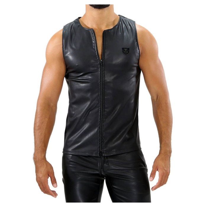 Het TOF Paris Tank Top Fetish met Rits - Zwartmet is zo ontworpen dat hij mooi aangesloten zit op je lichaam wanneer je hem draagt. Dankzij de goede pasvorm en hoge kwaliteit is dit item een ware musthave voor in jou garderobe. De TOF Paris Tank Top Fetish met Rits - Zwart is vervaardigd van een imitatie leren stof en voorzien van een ritssluiting en het TOF embleem op de voorkant. Combineer de TOF Paris Tank Top Fetish met Rits - Zwart eenvoudig met andere kinky items voor een geweldige look.