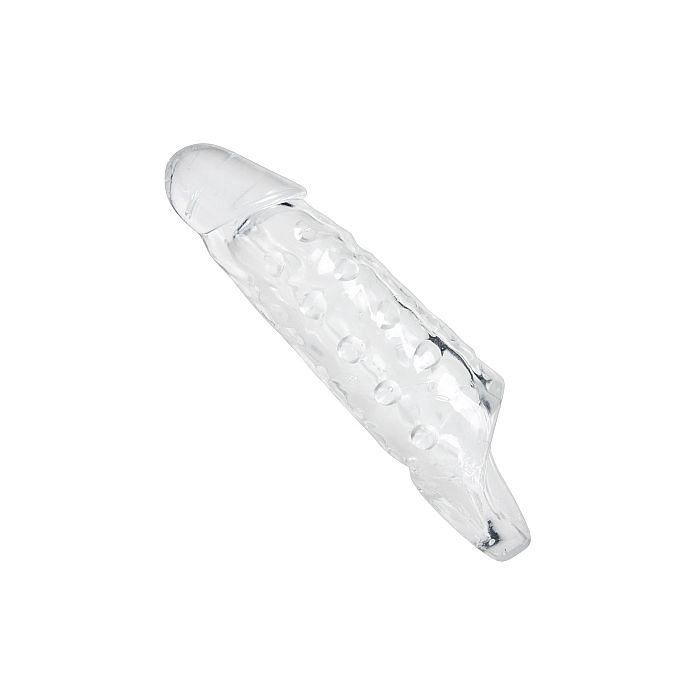 Geef je penis een boost met deze geweldige verlengende penissleeve en verras je partner met een maatje meer. Ze weet niet wat haar overkomt wanneer jijhaar zal penetreren wanneer jij deze sleeve om hebt. De penissleeve heeft een eikelvormige top voor een realistisch gevoel. De binnenkant heeft heerlijke stimulerende noppen zodat ook jij kan genieten van deze geweldige toy tevens zorgen de noppen voor perfecte grip, dus hoe hard jullie ook tekeer gaan, hij zal perfect blijven zitten. Geniet van al het goeds wat deze verlengende penissleeve heeft te bieden en kom samen tot heerlijke orgasmes. Met een klein beetje glijmiddel glij jij snel en eenvoudig de sleeve binnen.