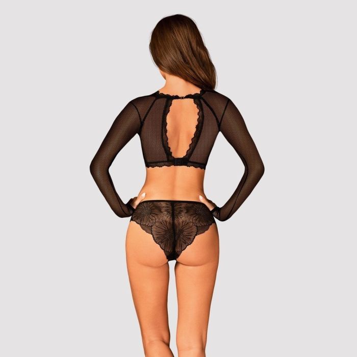 Deze top is gemaakt van 85% polyamide en 15% elastaan, waardoor het duurzaam en rekbaar is. Het is belangrijk om op te merken dat Obsessive een aparte maattabel heeft, dus het is raadzaam om deze te raadplegen bij het kiezen van de juiste maat. Met de Mibelia bustevrije top met lange mouwen van Obsessive ben je verzekerd van een opvallende en uitdagende look, perfect voor speciale gelegenheden of om je partner te verrassen.