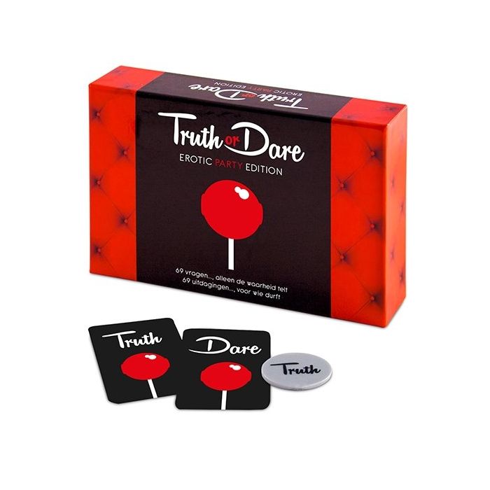 Speel jij ook weleens het spel truth or dare? Maar verzin jij dan altijd zelf de vragen en opdrachten? Tease & Play komt nu met een schitterende erotische party edition van het welbekende spel om elkaar beter te leren kennen. Zij hebben voor jullie de vragen en opdrachten samengesteld zodat het nog spannender wordt. Het spel bestaat uit 69 pikante vragen en 69 uitdagende opdrachten die beantwoord of uitgevoerd moeten worden. Het spel is bedoeld voor 3 of meer vrienden en is eenvoudig in gebruik. Met behulp van de flipcoin bepaal je welke kaart gepakt moet worden. Bij Truth kaart verdien je alleen punten met een eerlijk antwoord. Hoe gedetailleerder, hoe beter. Bij een Dare kaart krijg je punten als je de uitdagende opdracht volbrengt. Wil je de vraag liever niet beantwoorden of een opdracht echt niet doen? Geen probleem, maar dan worden de punten bij jou wel in mindering gebracht. Alles mag, maar niets moet. Hoe ver durven jullie te gaan?
