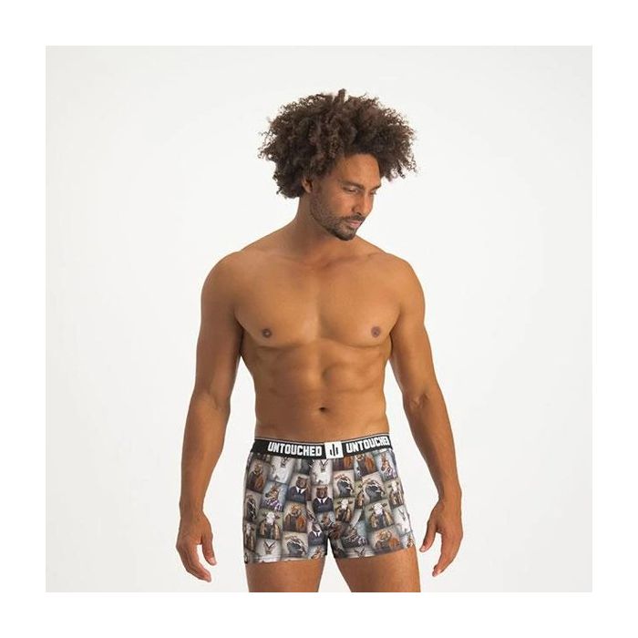 De Untouched Manimal Boxershort zit lekker, voelt lekker en oogt lekker! Deze geweldig zachte boxershort heeft een nauwsluitend model met elastische tailleband. De boxershort heeft een opvallende en kleurrijke fotoprint van heren met dieren hoofden. Lekker gek!