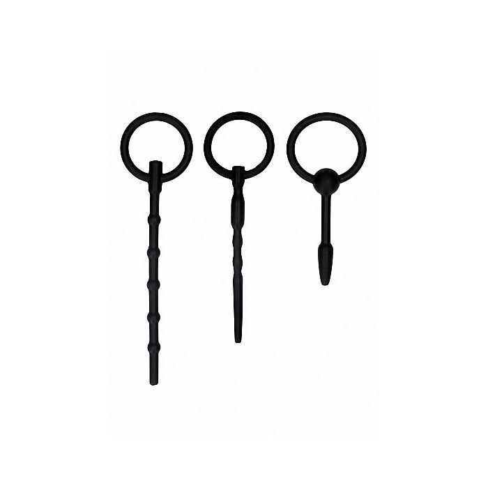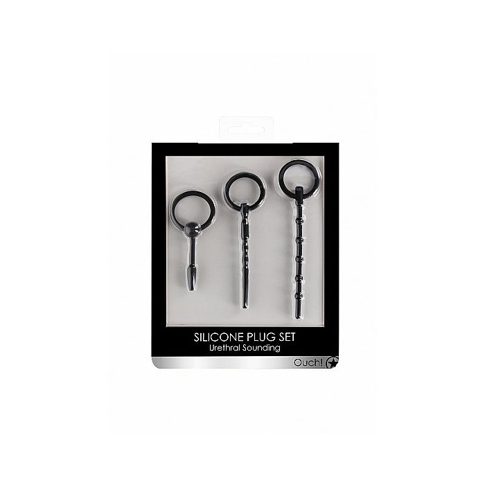Deze Ouch! urethral sounding plug set bestaat uit drie flexibele siliconen dilators van hoge kwaliteit. Dankzij de verschillende afmetingen kan je eindeloos experimenteren met deze set. Geniet van extra stimulerende texturen voor intens genot. Dankzij de handige ringen kan je de dilators eenvoudig verwijderen. Let op: gebruik uitslutiend een glijmiddel op waterbasis.