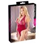 Voor een spannende nacht in de slaapkamer of een hete nacht in de club is deze body de perfecte outfit om iedereen te verleiden. De body is aan de onderkant gemaakt van een fluweelachtig stofje en over de borsten van semi transparant kant in bloemetjes motief. De body sluit achter in de nek en op het midden zijn twee bandjes aangebracht met een decoratief ringetje. De body heeft een string model zodat jij het ook onder een strakke broek kan dragen zonder lijnen te zien.