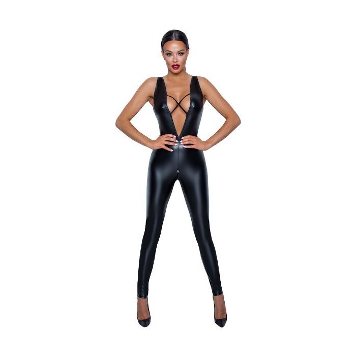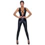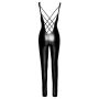 Laat jouw vrouwelijke rondingen de show stelen in de strakke Velvet Straps Jumpsuit van Noir Handmade. Deze jumpsuit heeft een spannend design en is gemaakt van glad, wetlook materiaal, voorzien van stretch. De jumpsuit heeft mouwloos model met een diepe V-hals en laag uitgesneden rug.