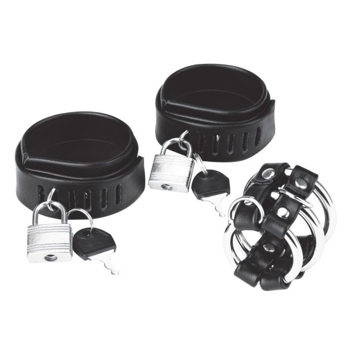 Beperk de geslachtsdelen van je onderdanige en beperk ze met de Locking Ball stretcher, Cock Ring en 3 Ring Cock Cage van Blue Line. Creëer een intrigerende, sexy fetisj-look voor de geslachtsdelen van de drager, terwijl je hen maximale opwinding en een gevoel van gevangenschap biedt met dit ingewikkelde stuk. Het cock cage-stuk past strak om de penis en zodra het gecombineerd wordt met de verstelbare ball stretcher en cock ring, zal het een strakke en opwindende beperking creëren die veilig vergrendeld kan worden om een totale gevangenschap te ervaren. Om te beginnen plaats je een vergrendelingsriem aan de basis van de testikels, vervolgens plaats je de andere vergrendelingsriem rond de basis van de penis en schuif je de gekooide ringen om de schacht, waarbij je één D-ring aan de balriem en de andere aan de penisriem vergrendelt. Beheers de intieme delen van je onderdanige en word de ultieme dominante partner met behulp van de cock gear van Blue Line!