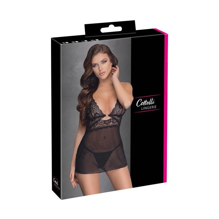 In de Verleidelijke Babydoll van Cottelli Collection ben jij klaar om te verleiden. De babydoll is gemaakt van sierlijk kant en semi-transparant mesh. Het kant en het mesh zijn voorzien van stretch en schijnen beiden door voor een zinnenprikkelend resultaat.