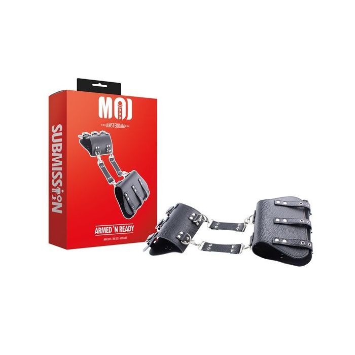 Ontdek de meest spannende momenten door je armen te boeien met deze degelijke armboeien van Moi Submission. De armboeien zijn gemaakt van imitatieleer en zijn eenvoudig in gebruik. De boeien zijn eenvoudig op maat te maken dankzij de handige gespsluitingen. Bevestig de boeien aan elkaar d.m.v. de dubbele ketting van imitatieleer.