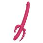 De Essentials Anywhere Pleasure Vibrator van Dreamtoys is een veelzijdige vibrator die ontworpen is om aan al je behoeften te voldoen. Met 4 stimulatiepunten in één speeltje, biedt deze vibrator een ongekend plezier en ultieme veelzijdigheid. Het apparaat beschikt over 2 penissen voor dubbele penetratie, een konijn voor clitorale stimulatie en anale kralen voor nieuwe sensaties. Met 3 krachtige motoren die 10 vibratieritmes aansturen, is de reis naar extase grenzeloos. De vibrator is gemaakt van luxe, fluweelzachte siliconen en verwent de zintuigen met hoogwaardige materialen. Het ergonomische ontwerp zorgt voor comfort en maximale tevredenheid. De vibrator wordt geleverd met een handige USB oplaadkabel voor moeiteloos opladen en heeft een lengte van 40 cm en een breedte van 3,7 cm, waardoor hij het perfecte formaat heeft voor veelzijdig plezier