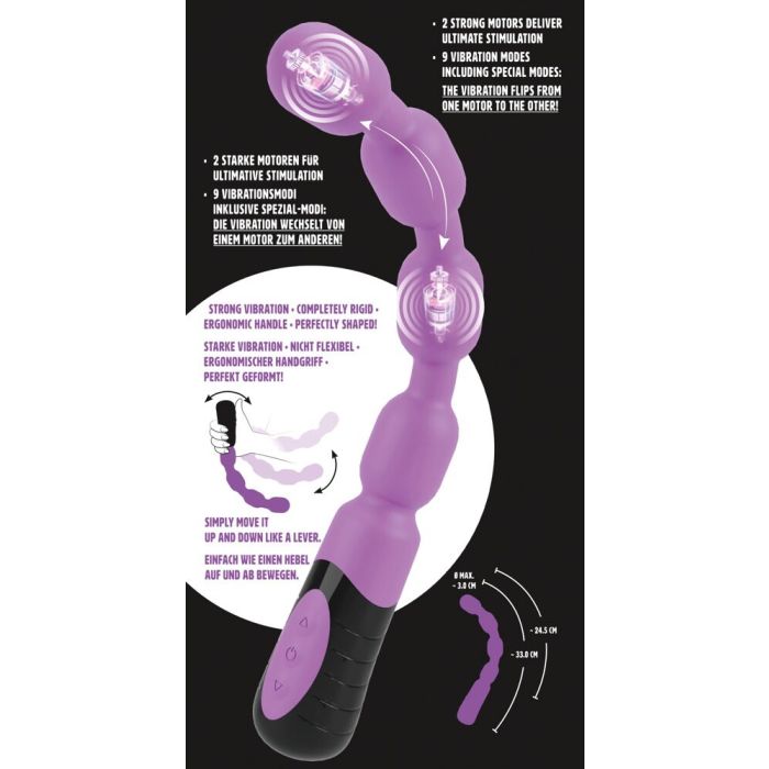 De High Performance Beads bullet vibrator van You2Toys is speciaal ontworpen om je meest gevoelige plekken te stimuleren! Met zijn perfecte kromming en stevige, niet-flexibele schacht, bereikt deze vibrator moeiteloos zowel de vaginale G-spot als de anale P-spot voor een intense en gerichte massage. Het zijdezachte oppervlak zorgt voor een comfortabele inbreng, terwijl het ergonomische handvat je in staat stelt om de vibrator eenvoudig op en neer te bewegen als een hefboom. Geniet van krachtige vibraties, aangedreven door twee motoren die vooral voelbaar zijn in de punt en de middelste bal, en kies uit maar liefst 9 vibratiestanden om je ervaring altijd spannend te houden. Met de unieke functie die de vibraties automatisch laat schakelen tussen de motoren, ervaar je een verrassend samenspel van sensaties. En het beste van alles? Deze bullet vibrator is waterproof, waardoor je ook in bad of onder de douche kunt genieten van je intieme momenten!