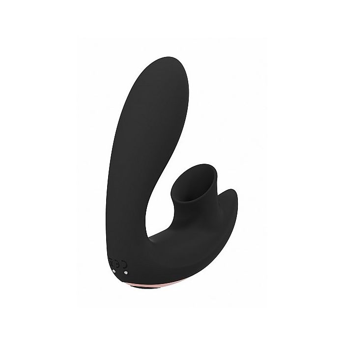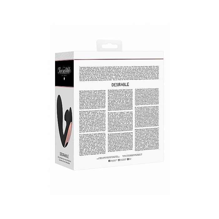 Voor een heerlijke zuigfunctie met een fijne penetratie ga jij voor deze Vibrator met Zuigfunctie Desirable van Shots Irresistible. De vibrator is voorzien van een handig push button systeem waarmee jij de diverse standjes makkelijk kan bedienen. De ronde vorm van de schacht glijdt makkelijk naar binnen. Laat het zuigmondje op je clitoris rusten en schakel de toy in. Ervaar een geweldige dubbele stimulatie van vibraties en zuigende standen. Na gebruik reinig jij snel en hygienisch je toy onder de kraan gevolgd door een toycleaner. Laad de vibrator met zuigfunctie Desirable nadien makkelijk op met het meegeleverde usb kabeltje zodat jij bij het volgende avontuur direct weer aan de slag kan gaan. De toy heeft een oplaadtijd nodig van 120 minuten waarna jij er 60 minuten mee aan de slag kan gaan. De Vibrator met Zuigfunctie Desirable is afgewerkt met gouden details voor een luxe look.